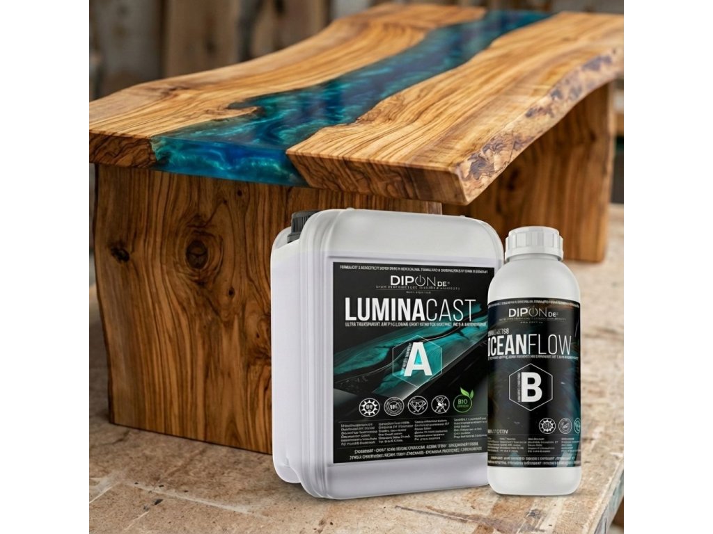 LuminaCast 9 Ocean Flow je čirá nízko viskózní epoxidová pryskyřice, která se pyšní vysokou transparentností. Tato licí epoxidová pryskyřice byla speciálně vyvinuta pro odlévání velkých projektů, včetně epoxidových říčních stolů, designového nábytku, lamp a dalších.