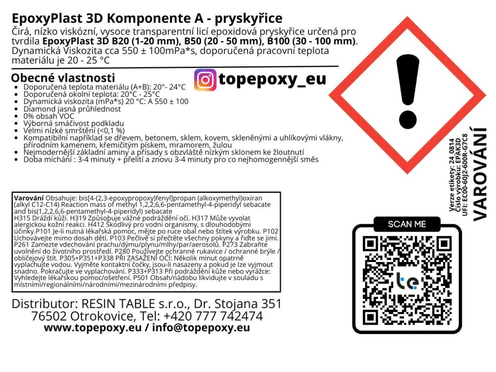- EpoxyPlast 3D Složka A - epoxidová pryskyřice pro všechna tvrdila EpoxyPlast 3D - (580 mPa*s ± 50, 23°C)