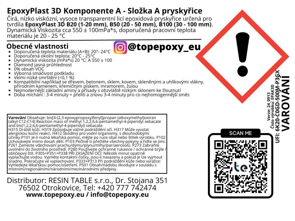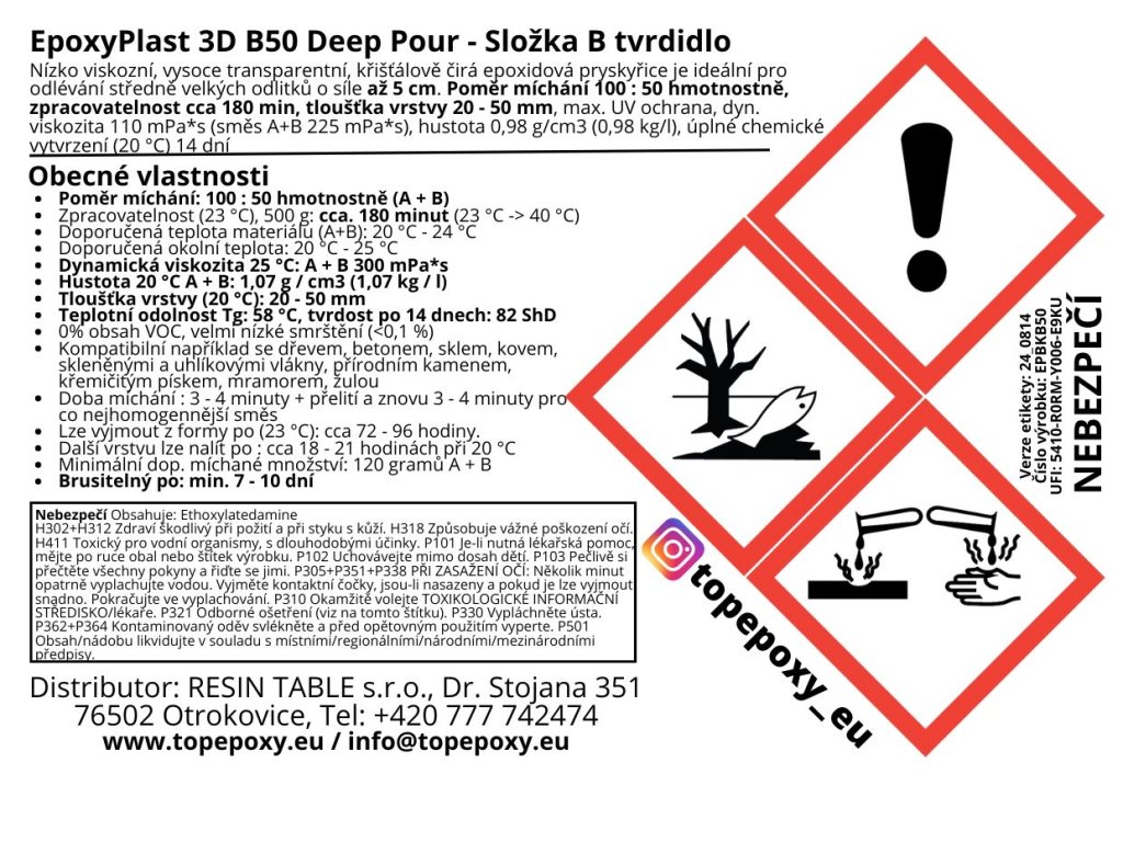 DIPON Epoxyplast 3D B50 Deep Pour 0,75 kg - Clear Epoxy Resin for the Production of Tables, Maximum Casting Thickness 5 cm